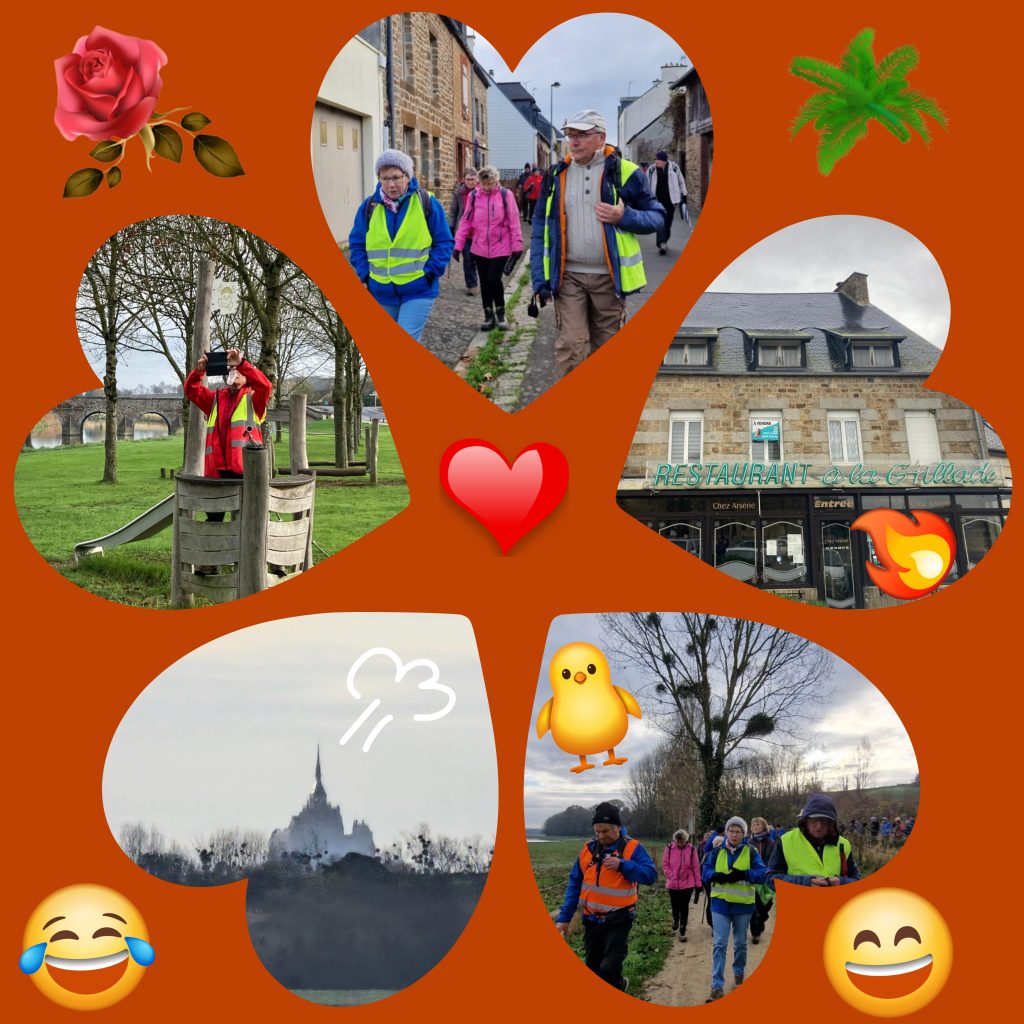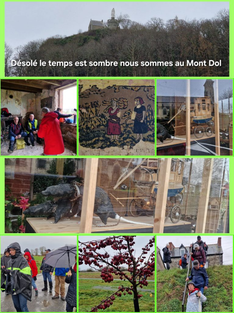 Pour ce 3éme mardi de Décembre nous avions RDV au Vivier sur Mer pour une randonnée en bordure de mer et commune avoisinante, la pluie nous a accompagnée tout au long du parcours, pour la pause du midi au Mont Dol on avait néanmoins un abri que tout le monde a apprécié, merci à Henri qui a mené son groupe de main de maître👍👍ainsi qu’à André et Michel pour la sécurité👩🦯👩🦯🥾🥾👍